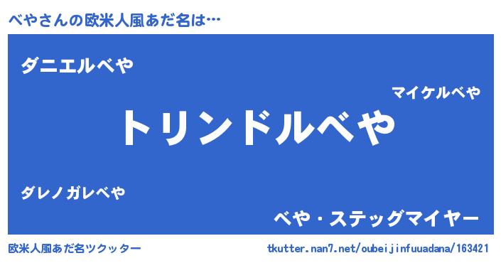 | 女子向けラノベタイトル風あだ名 | 『べやの玉の輿計画!』『死神べやの再婚』 |