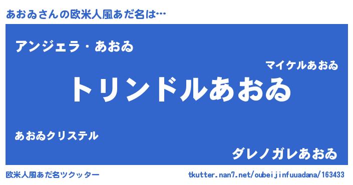 | 男性向けラノベタイトル風あだ名 | 『転生したらあおゐだった件』 |