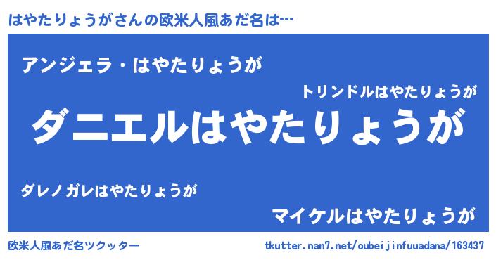 | 男性向けラノベタイトル風あだ名 | 『ノーゲーム・ノーハヤタリョウガ』 |