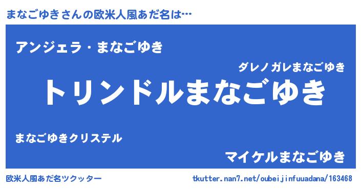 | 胡散臭い通販商品みたいなあだ名 | 『必ず成功するブレスレット…その名も「まなごゆき」』 |
