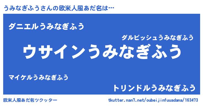 | 女子向けラノベタイトル風あだ名 | 『うみなぎふうの卵を拾いまして』 |