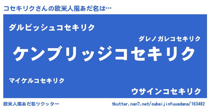 | 意味不明あだ名 | 『自称コセキリク』『永久保存コセキリク』 |