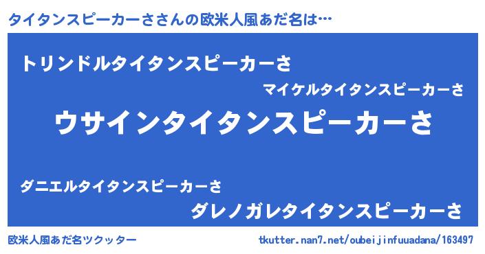 | 女子向けラノベタイトル風あだ名 | 『タイタンスピーカーさの卵を拾いまして』 |