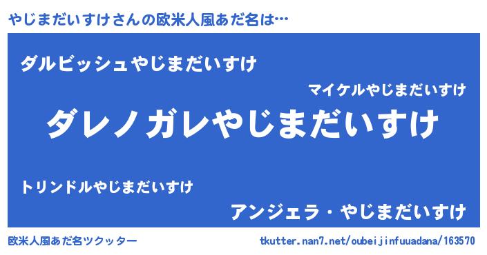 | 男性向けラノベタイトル風あだ名 | 『この素晴らしい世界にやじまだいすけを!』 |
