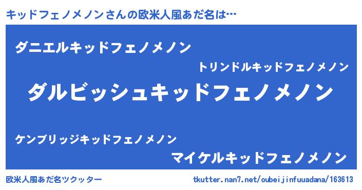 | 意味不明あだ名 | 『永久保存キッドフェノメノン』 |