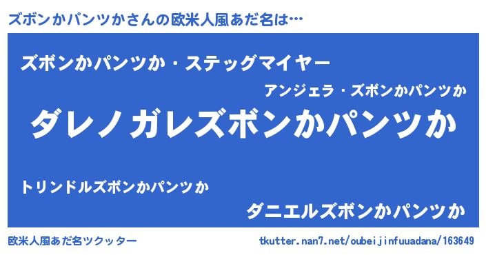 | 女子向けラノベタイトル風あだ名 | 『悪役ズボンかパンツかに転生したようですが、知った事ではありません』 |