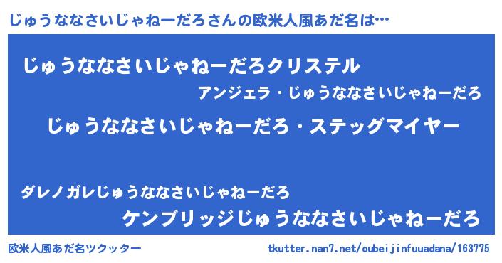 | ヘコむあだ名 | 『なまこ酢』『じゅっふぃ~』 |
