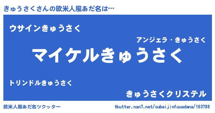 | 男性向けラノベタイトル風あだ名 | 『キュウサクアートオンライン』 |