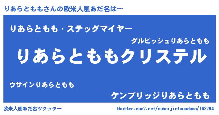 | 肩書あだ名 | 『りあらともも総理大臣』 |