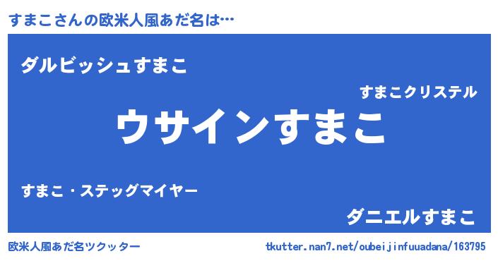 | 男性向けラノベタイトル風あだ名 | 『すまこの嫁は女の子じゃないと思った?』 |