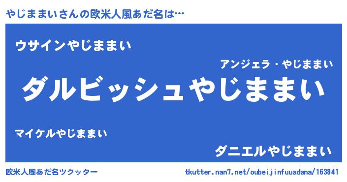 | 男性向けラノベタイトル風あだ名 | 『やじままいという概念が存在しない退屈な世界 』 |