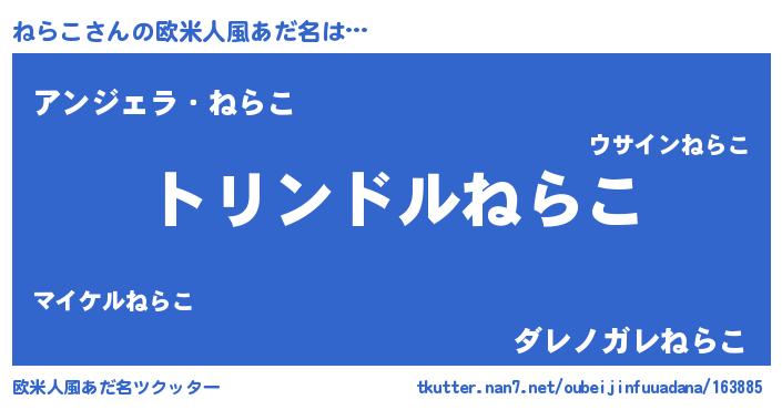 | 男性向けラノベタイトル風あだ名 | 『転生したらねらこだった件』 |