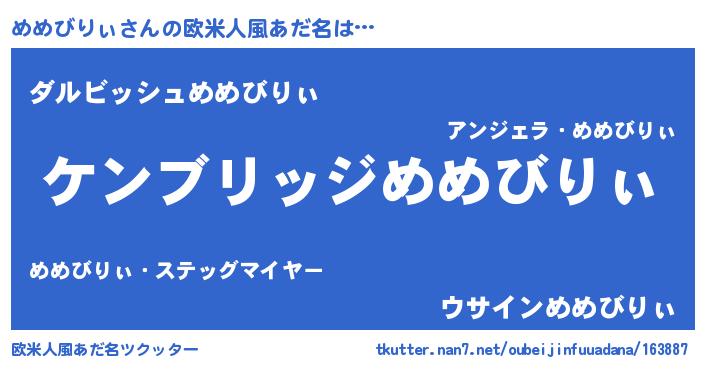 | 意味不明あだ名 | 『自称めめびりぃ』『永久保存めめびりぃ』 |