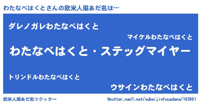 | 男性向けラノベタイトル風あだ名 | 『緋弾のワタナベハクト』 |