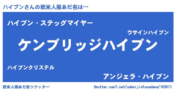 | 男性向けラノベタイトル風あだ名 | 『Re:ハイブンから始める異世界生活』 |