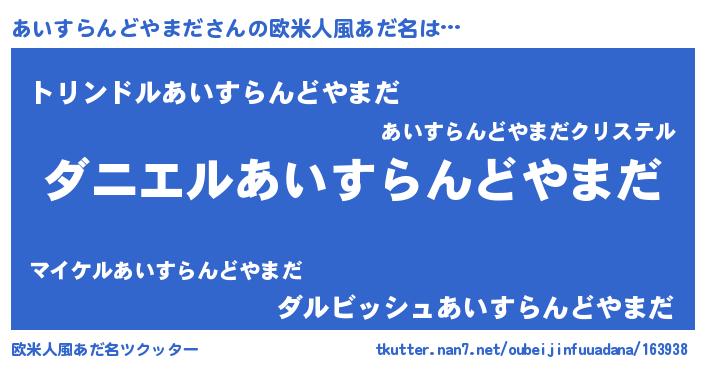 | 女子向けラノベタイトル風あだ名 | 『あいすらんどやまだ恋絵巻』 |