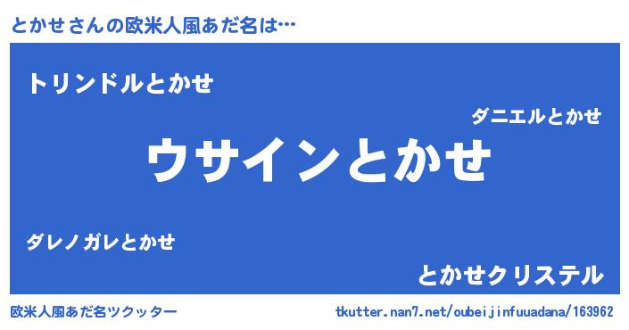 | 男性向けラノベタイトル風あだ名 | 『とかせの嫁は女の子じゃないと思った?』 |