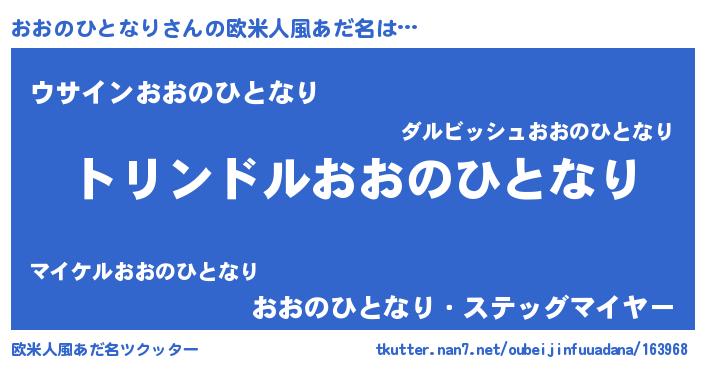 | 男性向けラノベタイトル風あだ名 | 『おおのひとなり~年齢イコール彼女いない歴の魔法使い~』 |