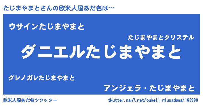 | 男性向けラノベタイトル風あだ名 | 『おまえをオタクにしてやるから、俺をたじまやまとにしてくれ! 』 |