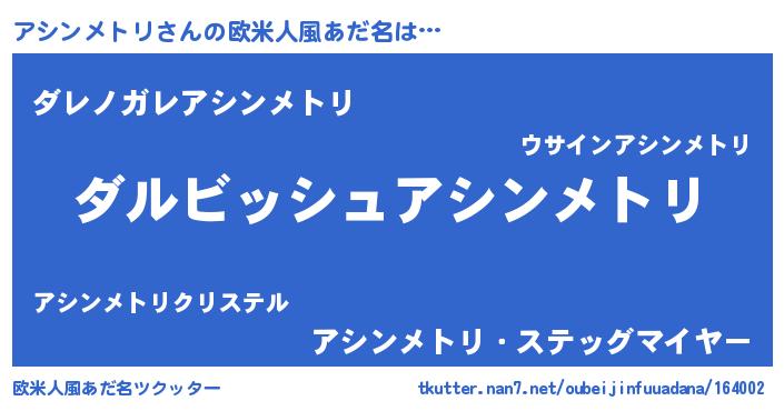 | 意味不明あだ名 | 『永久保存アシンメトリ』 |