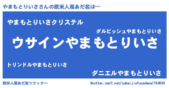 | 男性向けラノベタイトル風あだ名 | 『やまもとりいさの嫁は女の子じゃないと思った?』 |