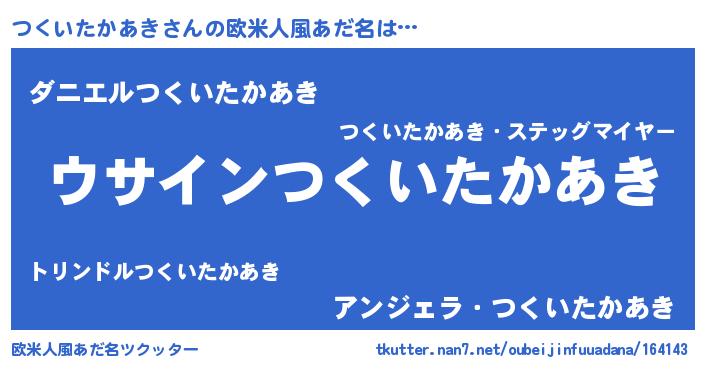 | 女子向けラノベタイトル風あだ名 | 『つくいたかあきの卵を拾いまして』 |