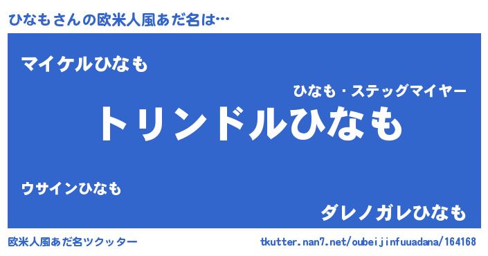 | ポケモン風あだ名 | 『ヒナキング』『ヒナチュウ』 |