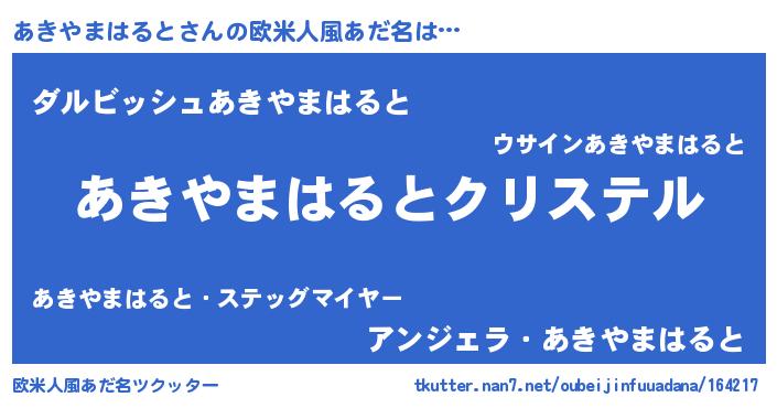 | 可愛いあだ名 | 『あきちー』『あきやまはるとママ』 |
