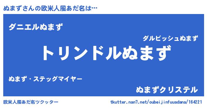 | 男性向けラノベタイトル風あだ名 | 『ぬまず~年齢イコール彼女いない歴の魔法使い~』 |