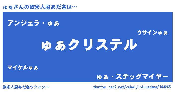 | 女子向けラノベタイトル風あだ名 | 『ゅぁの雑貨屋さん』『ゅぁ様がみてる』 |
