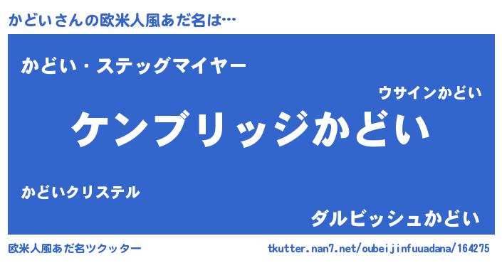 | ヘコむあだ名 | 『かどい(遠い目)』『かどを』『豆乳』 |