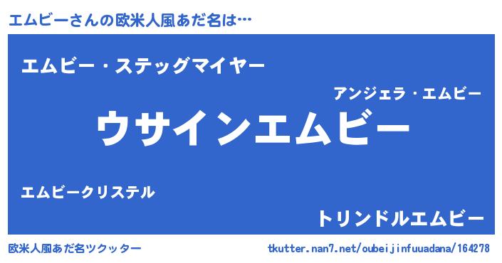 | 男性向けラノベタイトル風あだ名 | 『エムビーの嫁は女の子じゃないと思った?』 |