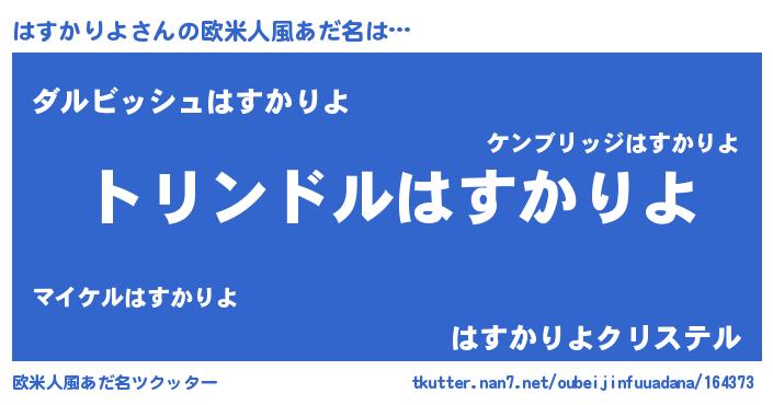 | 男性向けラノベタイトル風あだ名 | 『転生したらはすかりよだった件』 |