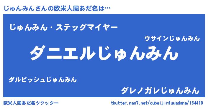 | ヘコむあだ名 | 『じゅを』『じゅんみん(震え声)』 |
