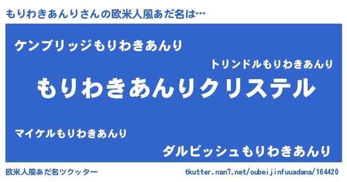 | 男性向けラノベタイトル風あだ名 | 『やはりもりわきあんりの青春ラブコメはまちがっている 』 |