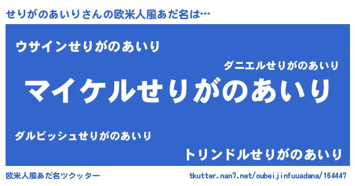| 男性向けラノベタイトル風あだ名 | 『せりがのあいりの憂鬱』 |