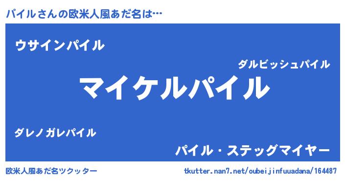 | 男性向けラノベタイトル風あだ名 | 『パイルの憂鬱』『魔弾の王とパイル』 |