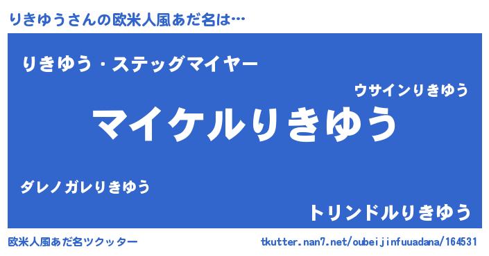 | 男性向けラノベタイトル風あだ名 | 『りきゆうの憂鬱』『緋弾のリキユウ』 |