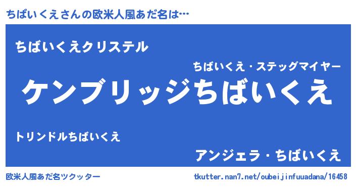 | 男性向けラノベタイトル風あだ名 | 『Re:ちばいくえから始める異世界生活』 |