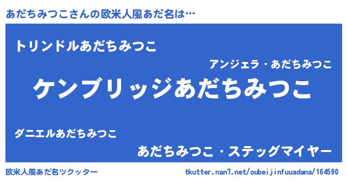 | 女子向けラノベタイトル風あだ名 | 『あだちみつこなんてお断りですっ。』 |