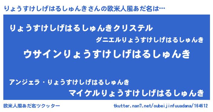 | 女子向けラノベタイトル風あだ名 | 『りょうすけしげはるしゅんきの卵を拾いまして』 |