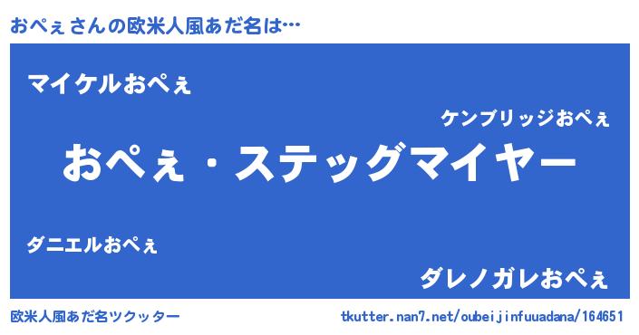| 男性向けラノベタイトル風あだ名 | 『緋弾のオペェ』『魔弾の王とおぺぇ』 |