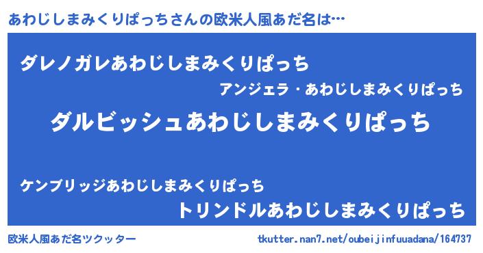 | 意味不明あだ名 | 『永久保存あわじしまみくりぱっち』 |