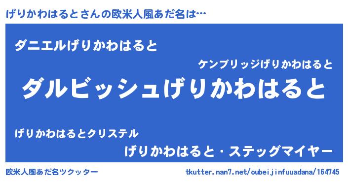 | 意味不明あだ名 | 『永久保存げりかわはると』 |