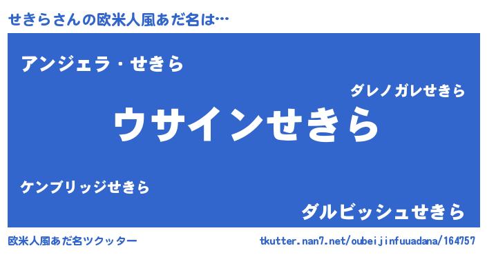 | 男性向けラノベタイトル風あだ名 | 『ダンジョンにせきらを求めるのは間違っているだろうか』 |