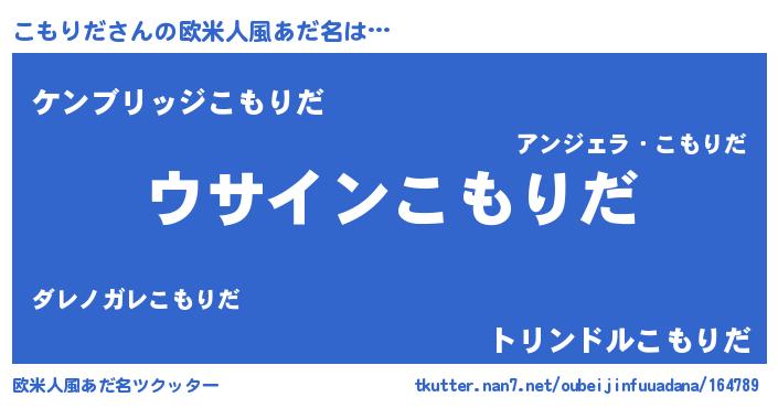 | 男性向けラノベタイトル風あだ名 | 『こもりだの嫁は女の子じゃないと思った?』 |