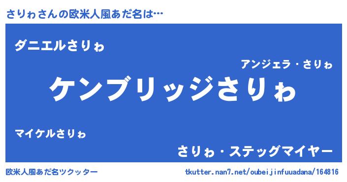 | 男性向けラノベタイトル風あだ名 | 『Re:さりゎから始める異世界生活』 |