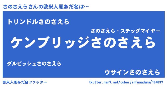 | 女子向けラノベタイトル風あだ名 | 『さのさえらなんてお断りですっ。』 |