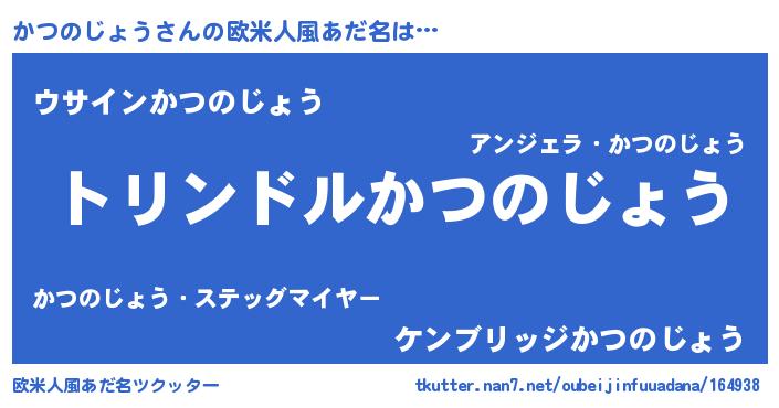| 男性向けラノベタイトル風あだ名 | 『かつのじょう~年齢イコール彼女いない歴の魔法使い~』 |