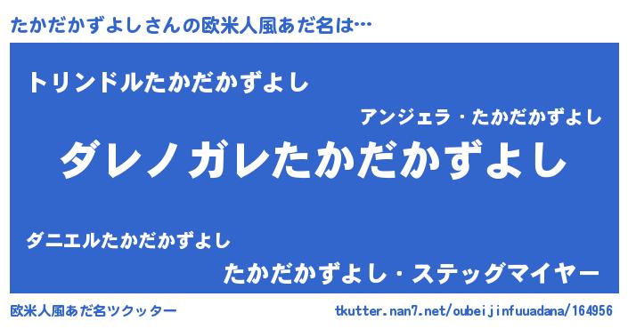 | 男性向けラノベタイトル風あだ名 | 『魔弾の王とたかだかずよし』 |